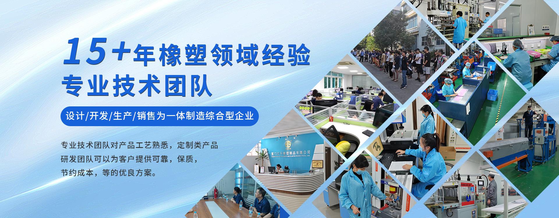 厦门汉升橡塑制品有限公司是以设计开发、生产、加工、销售为一体的制造综合型厂家。生产产品主要用于五金机械,电子,食品,医疗,通讯,卫浴,汽车,LED,运动器材等设备配套橡塑制品。ISO9001体系认证,医疗认证,汽车配件许可证认证企业,其产品范围硅胶管,硅胶异形密封条、硅胶发泡管、发泡板,硅胶板,氟胶管,EPDM,PU管,PE管件,PVC及ABS等挤塑件,PU,金属橡胶组合件等制品??砂从没б笊嫉?、导热、阻燃、耐油、防腐、超柔等橡胶制品。在橡胶制品领域,公司拥有各种新进设备,试验检测设备,生产的橡胶产品近万种,产品出口欧美、亚太等国家和地区。产品均通过SGS,FDA,ROHS,LFGB,UL-V0等品质认证以及国家生产许可证?,质量、计量合格认证,并深受客户好评。 以质量求生存,以信誉求发展,以互惠互利为原则,是我公司的宗旨。我公司产品质量可靠,价格合理,热忱欢迎各界朋友光临惠顾!愿我们携手并进 通力合作,共创美好未来!